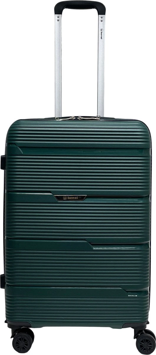 Middelgrote hardschalen koffer van het merk Benzi, gemaakt van lichtgewicht polypropyleen. De koffer is voorzien van een ritssluiting rondom die op slot te zetten is middels een vast TSA cijferslot op de zijkant van de koffer. Binnenin gevoerd, spanbanden en tussenschot met ritssluiting. Op het tussenschot zit een ritsvak voor het overzichtelijk opbergen van kleine reisaccessoires. Handvat op bovenkant en zijkant, uitschuifbare trekstang en comfortabel 4-wiel systeem.