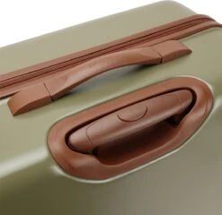 De Decent Retro serie is een betrouwbare koffer en je ideale reispartner. De schaal van de koffer is gemaakt van 100% polycarbonaat. Behalve dat je hiermee een prachtige licht glimmende afwerking krijgt, is de koffer ook nog eens super sterk en goed beschermd tegen schade. Polycarbonaat materiaal wordt in het algemeen gezien als een van de sterkste materialen om een koffer van te produceren. Dankzij de vier 360-graden draaiende dubbele wielen, twee prettig handvaten aan de bovenzijde en zijkant en een in hoogte verstelbare trekstang ben je van alle gemakken voorzien. Het luxe interieur bevat naast diverse rits vakken ook een tussenschot met rits en gekruiste inpakriemen. De koffer sluit je veilig met het TSA-combinatieslot, welke in de bruine kleur is verwerkt aan de zijkant van de koffer.