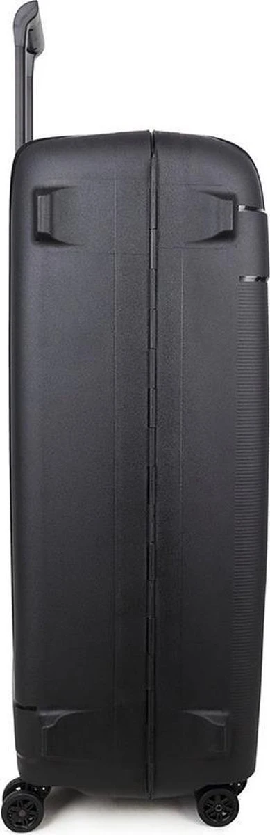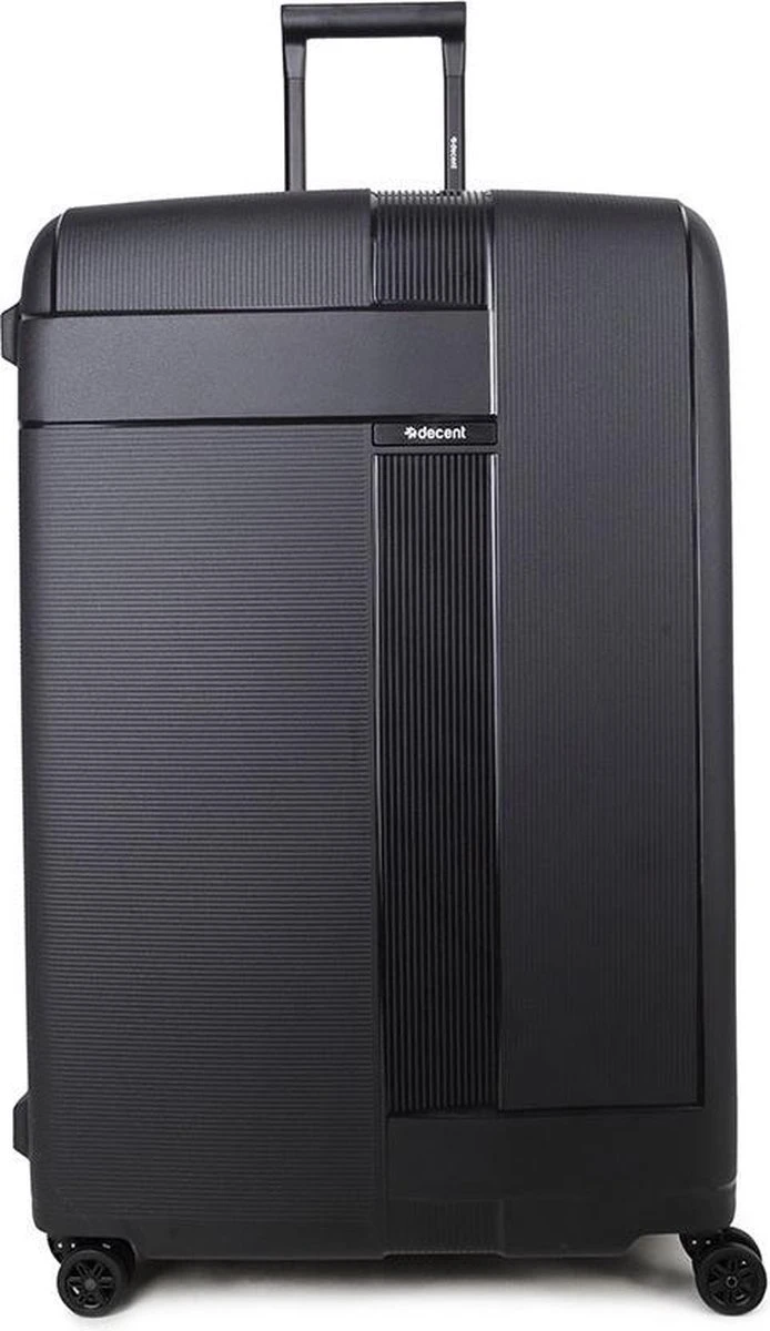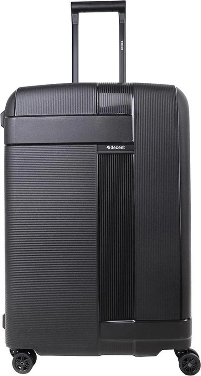 Middelgrote polypropyleen hardschalen koffer uit de Transit serie van het merk Decent. De koffer is rondom voorzien van drie kliksloten. Op de boven-en onderkant zitten sloten die u vastklikt en op de zijkant zit het hoofdslot dat een TSA cijferslot is. De koffer heeft een zwarte voering, een tussenschot met rits, een extra ritsvak en is voorzien van spanbanden. Handvat op bovenkant en zijkant en voorzien van een comfortabel dubbel 4-wiel systeem.