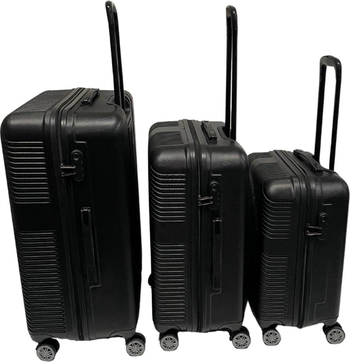 De set bevat drie koffers van verschillende grootte. De kleinste koffer heeft als afmetingen 50 x 30 x 25 centimeter. Deze trolley kun je meenemen als handbagage in het vliegtuig. Hij voldoet daarvoor aan de standaard maten. De medium koffer is 60 x 40 x 30 centimeter en de grootste meet maar liefst 70 x 50 x 35 centimeter