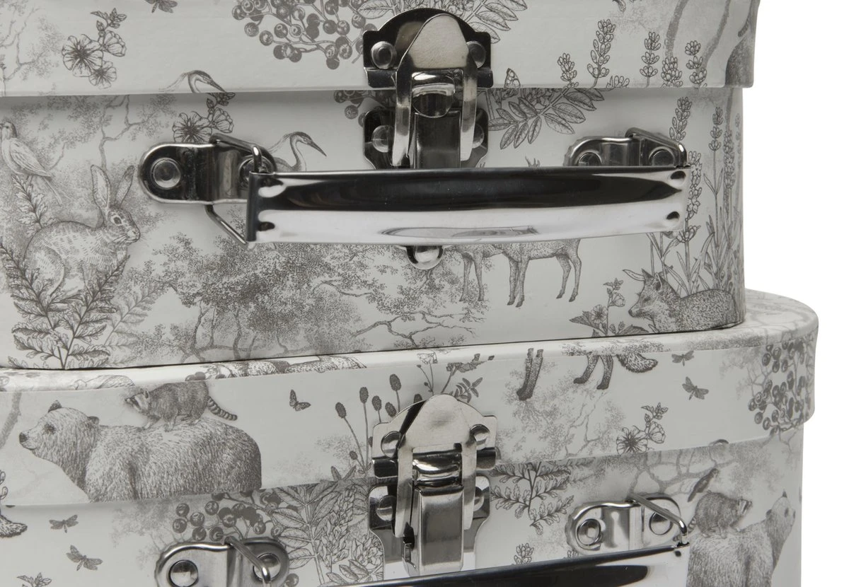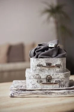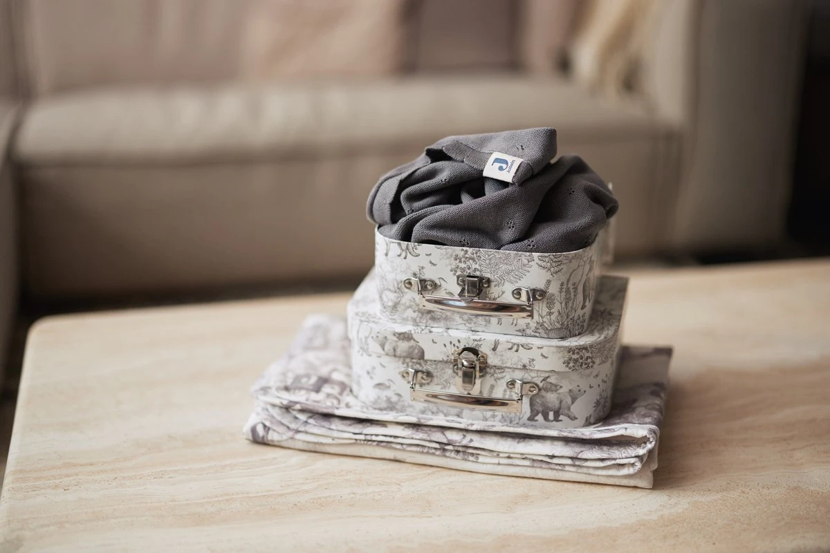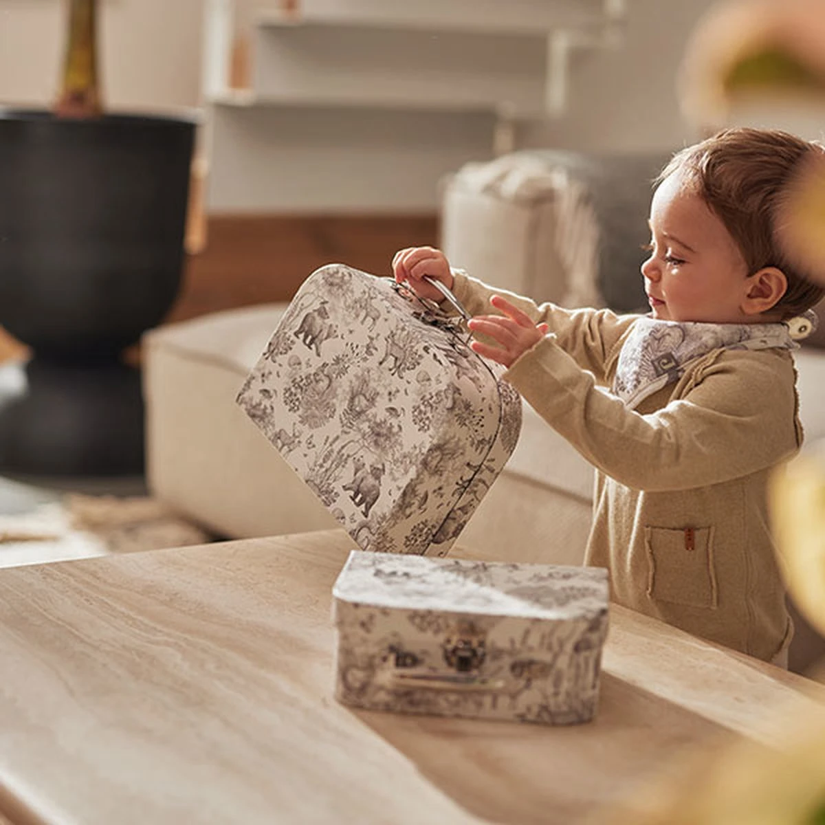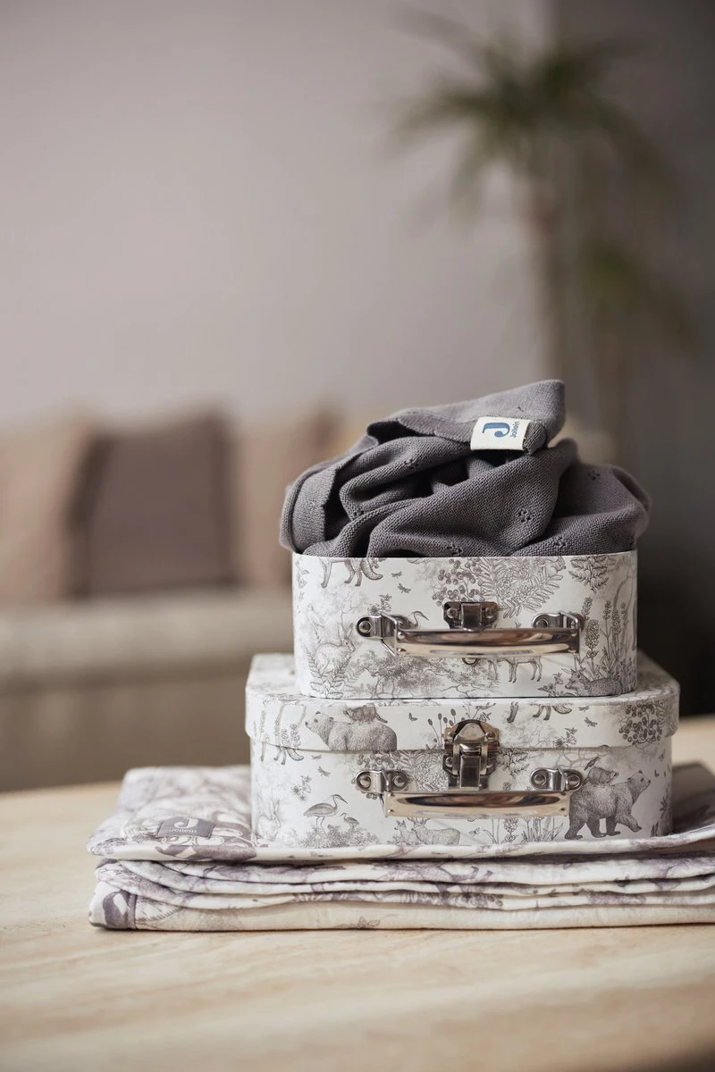 Het leuke koffertje heeft een mooi dessin van het Pimpelmees x Jollein bosdieren thema. Dit past dus perfect bij de andere items uit dit thema.