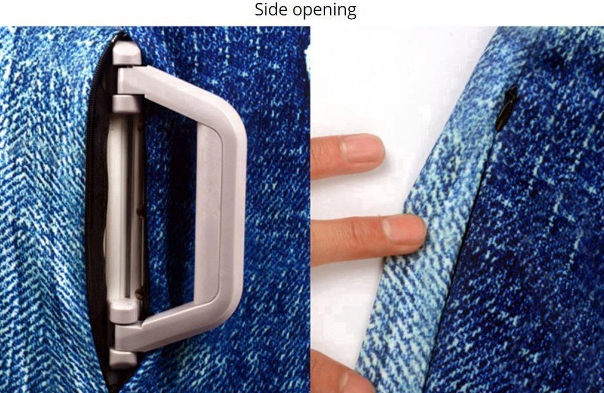 Aan zijkanten onzichtbare ritsen en aan onderzijde ook stevige rits om de hoes te sluiten.