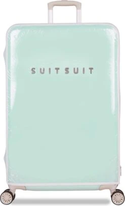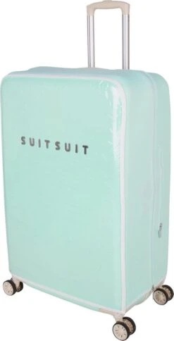De Fabulous Fifties beschermhoes is dé perfecte oplossing voor het behouden van een schone en krasvrije koffer. Met de extra beschermlaag houd je je SUITSUIT koffer zo lang mogelijk mooi. De voor- en achterzijde van de hoes zijn mat transparant PVC, zodat de kleur van je Fabulous Fifties koffer goed zichtbaar blijft. De iconic kleur Luminous Mint vind je terug aan de boven- en zijkanten van de beschermhoes.
