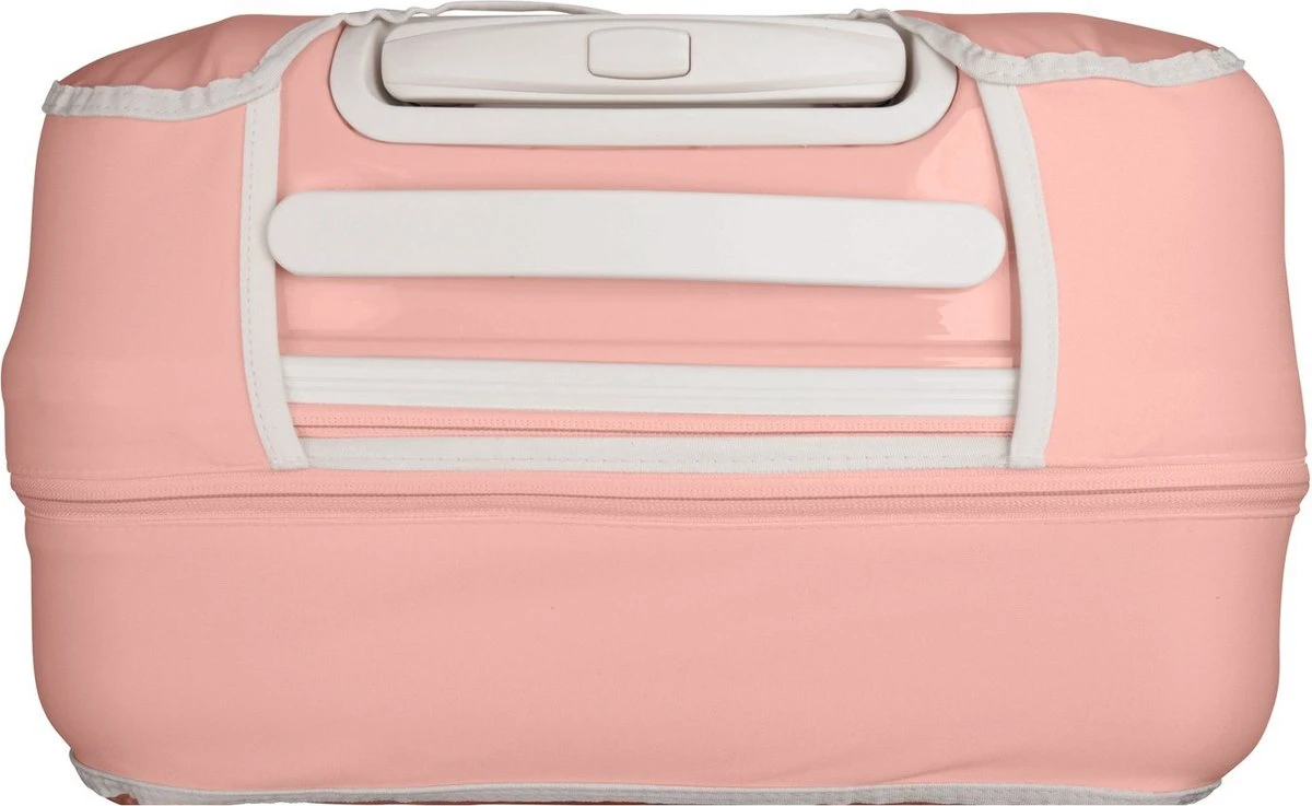 De Fabulous Fifties beschermhoes is dé perfecte oplossing voor het behouden van een schone en krasvrije koffer. Met de extra beschermlaag houd je je SUITSUIT koffer zo lang mogelijk mooi. De voor- en achterzijde van de hoes zijn mat transparant PVC, zodat de kleur van je Fabulous Fifties koffer goed zichtbaar blijft. De iconic kleur Papaya Peach vind je terug aan de boven- en zijkanten van de beschermhoes.