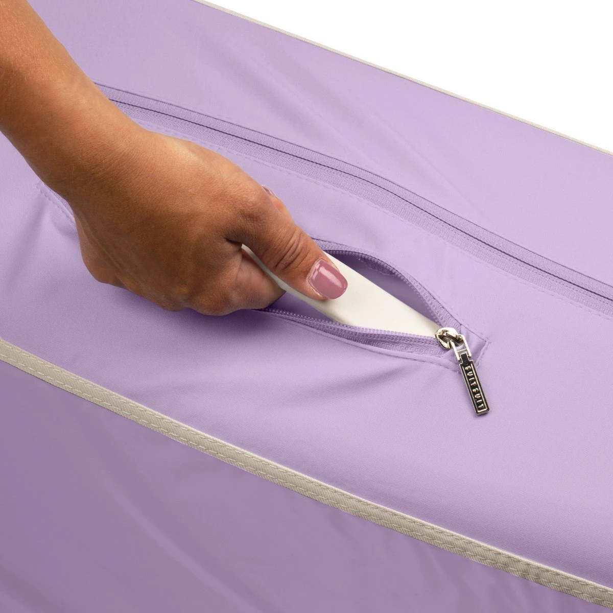 De Fabulous Fifties beschermhoes is dé perfecte oplossing voor het behouden van een schone en krasvrije koffer. Met de extra beschermlaag houd je je SUITSUIT koffer zo lang mogelijk mooi. De voor- en achterzijde van de hoes zijn mat transparant PVC, zodat de kleur van je Fabulous Fifties koffer goed zichtbaar blijft. De iconic kleur Royal Lavender vind je terug aan de boven- en zijkanten van de beschermhoes.